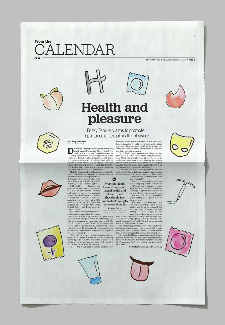 I developed the foundation of my illustration skills by trial and error working at The Daily Orange, the independent, student-run newspaper of Syracuse University. I was able to play with a bunch of different styles and mediums, like watercolor and photoillustration, to make visuals that were eye-catching and different from one another.