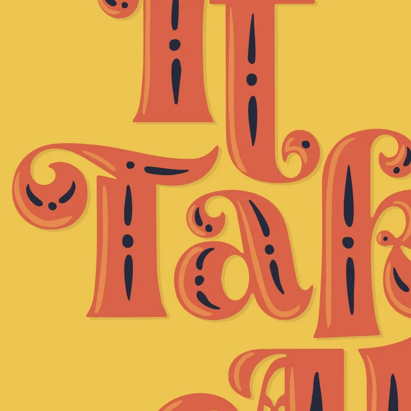A handy reminder when things get a little hectic. Created manipulating an existing typeface and hand drawing embellishments.